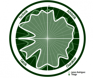 Vergleicht man ihn beispielsweise mit Thiago, einem weiteren hoch veranlagten Bayern Spieler, ist interessant zu sehen, dass unsere User in Thiago das bessere Gesamtpaket sehen, allerdings James stärker im Abschluss einschätzen. Jeder erfolgreiche und erfahrene Comunio-User weiß, dass sind die Fähigkeiten, die wir bei unseren Spielern suchen, weil sie dadurch viele Punkte sammeln.