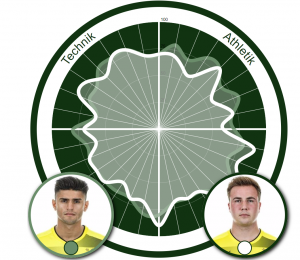 Beim Tabellenführer wird es so langsam eng. Vor allem im Mittelfeld hat man eine Überbesetzung und wenn alle fit sind, für drei Postionen mit Götze, Dahoud, Sahin, Castro, Weigl, Kagawa und Rode, 7 enorm starke Mittelfeldspieler. Wir wollen uns einen Zweikampf, den zwischen Mario Götze und Mo Dahoud, herauspicken und die Fähigkeiten der Spieler vergleichen.
